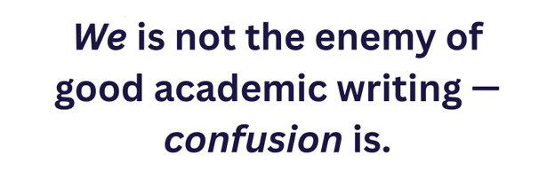 So, is it okay to use “we” in scholarly writing? In our view: yes — when used judiciously.